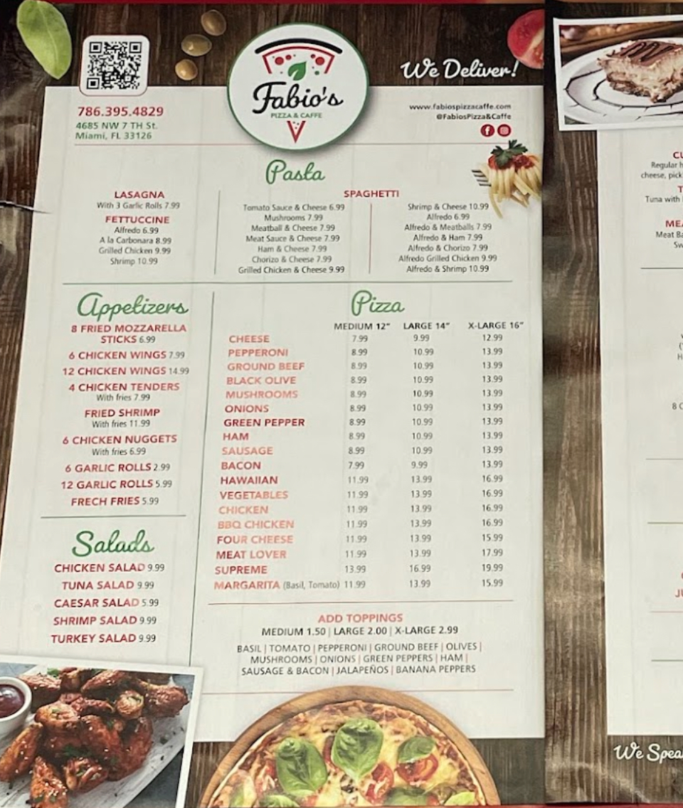 Welcome to Fabio’s Pizza & Caffe, located at 4685 NW 7th St, Miami. This delightful eatery stands out for its menu that exudes a passion for authentic flavors and top-notch ingredients. From the moment you step in, the aroma of freshly baked pizzas and savory pasta envelops you, promising an exceptional dining experience.